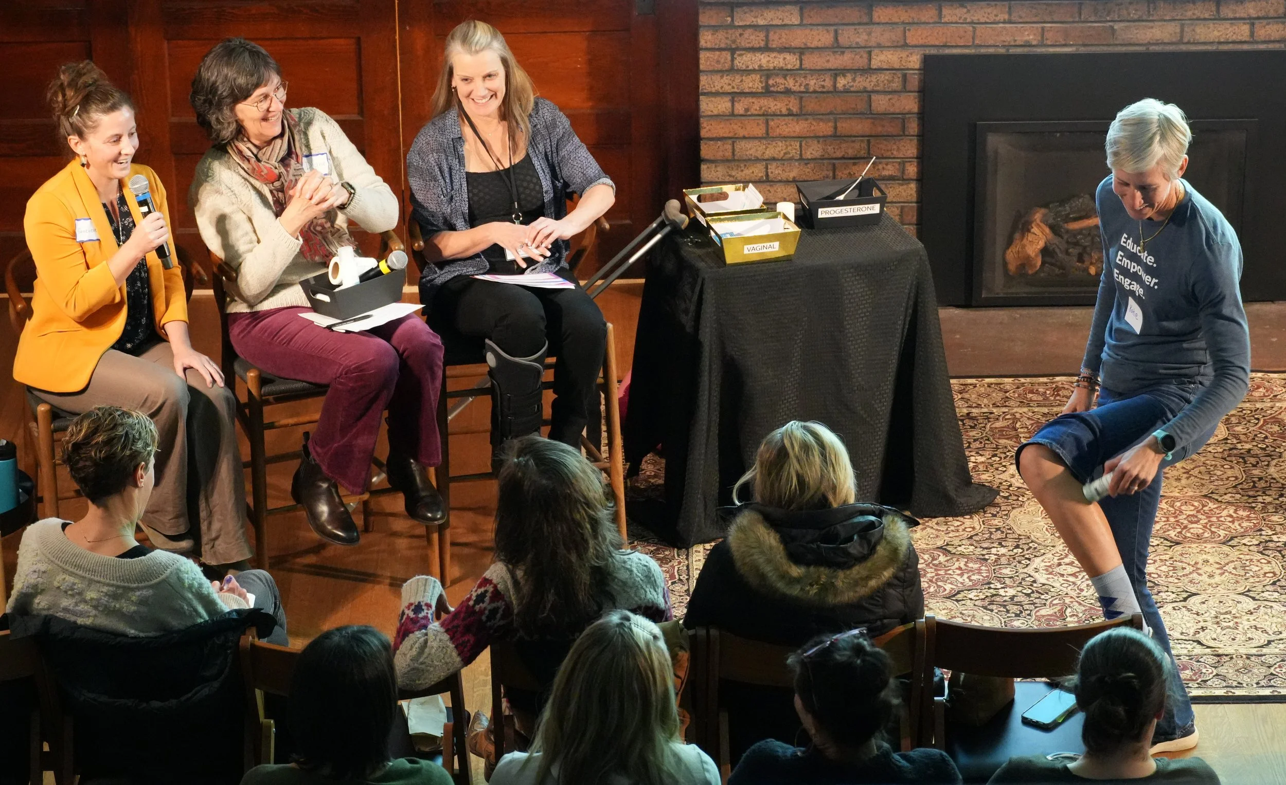Menopause 1.0: Chaos & Confusion focused on establishing foundational knowledge, covering the stages and symptoms of the transition. The most notable takeaway focused on overturning widespread misinformation, specifically addressing the flaws associated with the 2002 Women's Health Initiative (WHI) study concerning Hormone Replacement Therapy (HRT). Participants felt validated, realizing their perimenopausal experiences were common and motivating them to track their symptoms and advocate for themselves ("That I am the boss of my body!!!"). Community and humor were immediate takeaways, with attendees celebrating the shared experience and praising the moderator, noting humorously that the discussion proved, "Katie’s mom is having the best orgasms of her life". The session closed with the empowering directive: "Know your vulva".